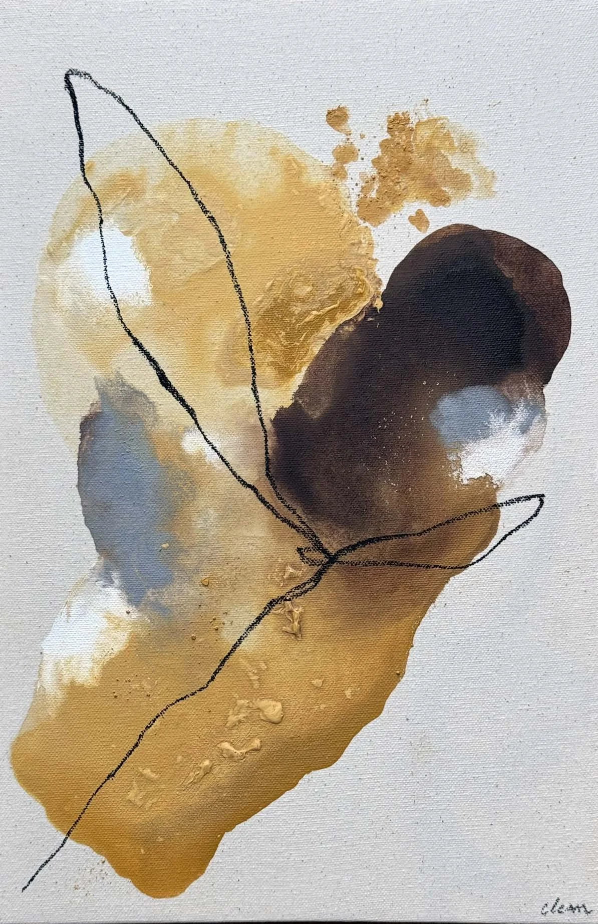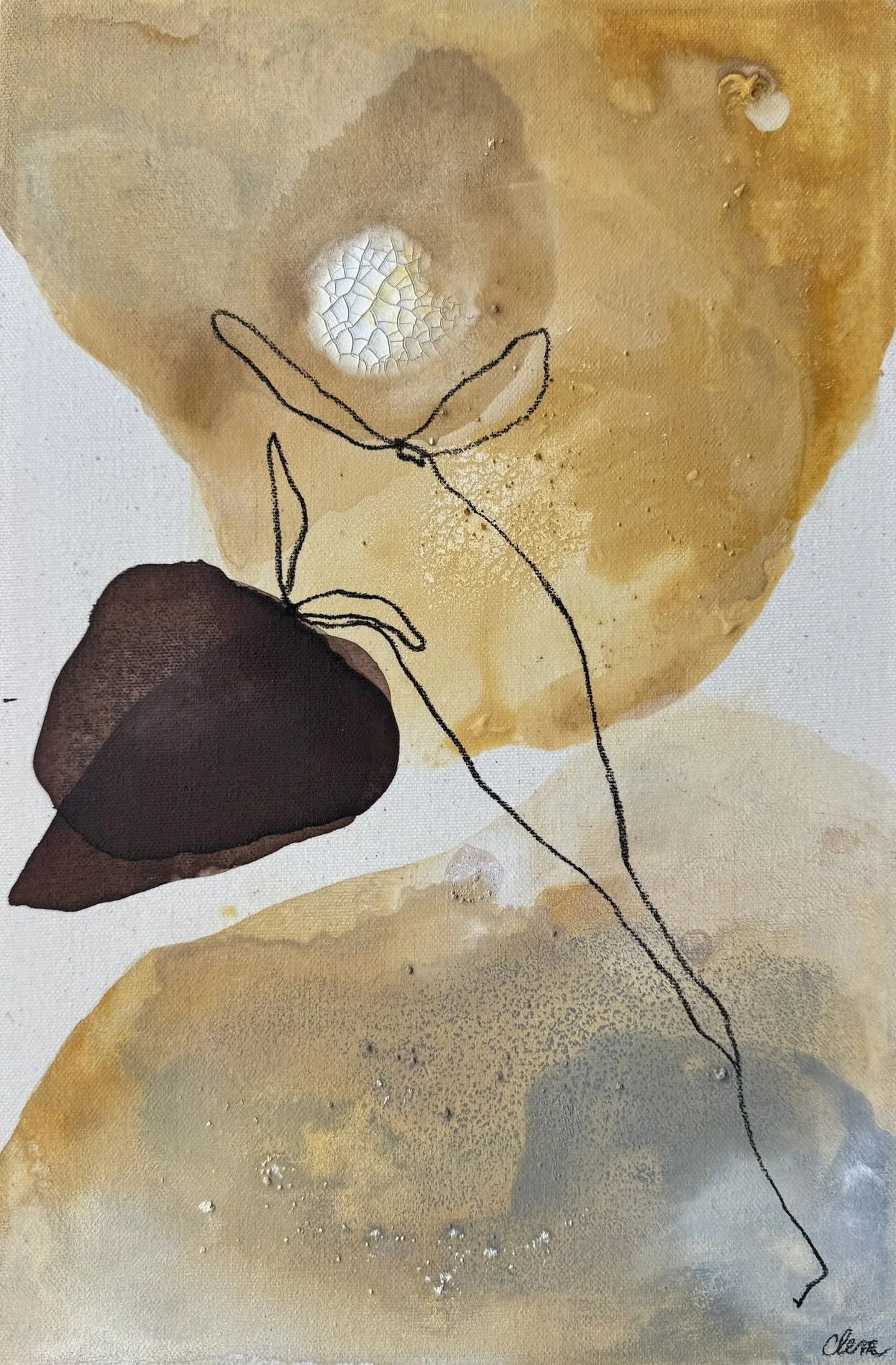 Ochre flower - 18"x24 - mixed media